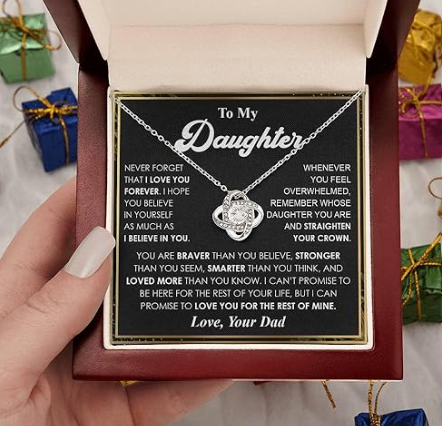 "Gave this to my daughter and her reaction hit me hard. When she read the message, she looked up with that soft, genuine smile I’ve missed for years. She put it on immediately and said it meant more than I knew. Seeing her wear it every day reminds me that, even with all my mistakes, she’s always felt my love."