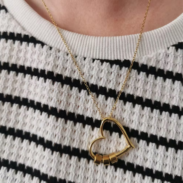 Picture this: She opens the box and the LED light reveals the necklace. She reads the card, the one that says everything you've been trying to express. Then she notices her family's names engraved around the heart.