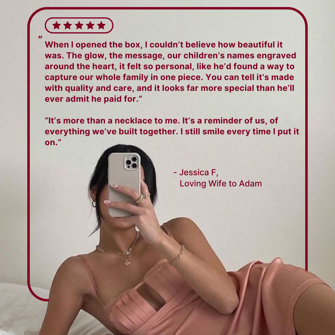 Each necklace is carefully handcrafted from premium materials designed to last a lifetime. Every curve, polish, and engraving is finished by skilled jewellers to ensure it feels as meaningful as it looks.