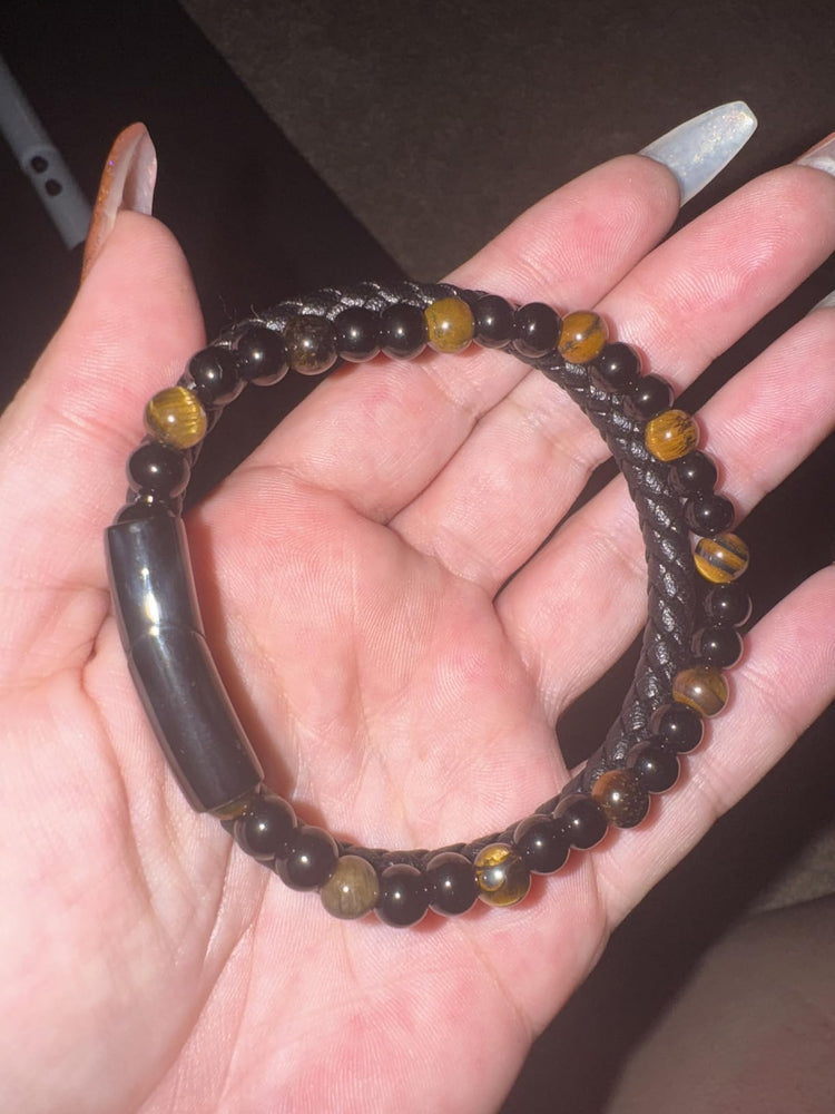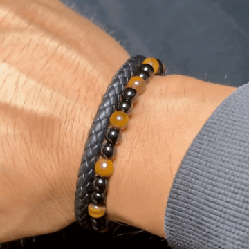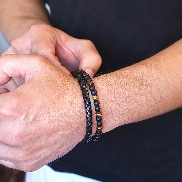 Finding something meaningful that still fits his style is not easy. This bracelet was created to give him a sense of strength he can carry with him every day. The natural Tiger Eye stones add a confident and grounded look, while the braided leather keeps it subtle, masculine, and easy to wear with anything.